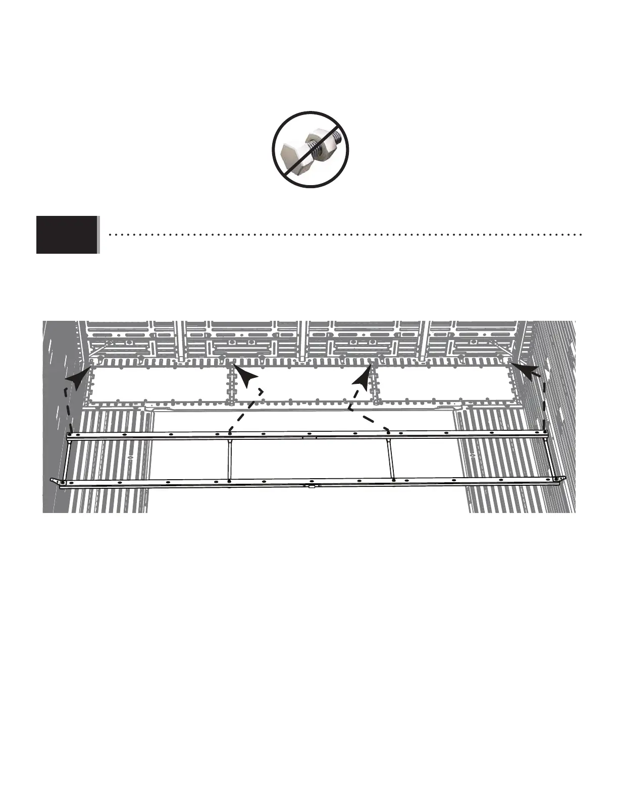 • Colocar el armazón de metal del travesaño, de los pasos 3.1–3.3, contra el travesaño y alinear los agujeros en el