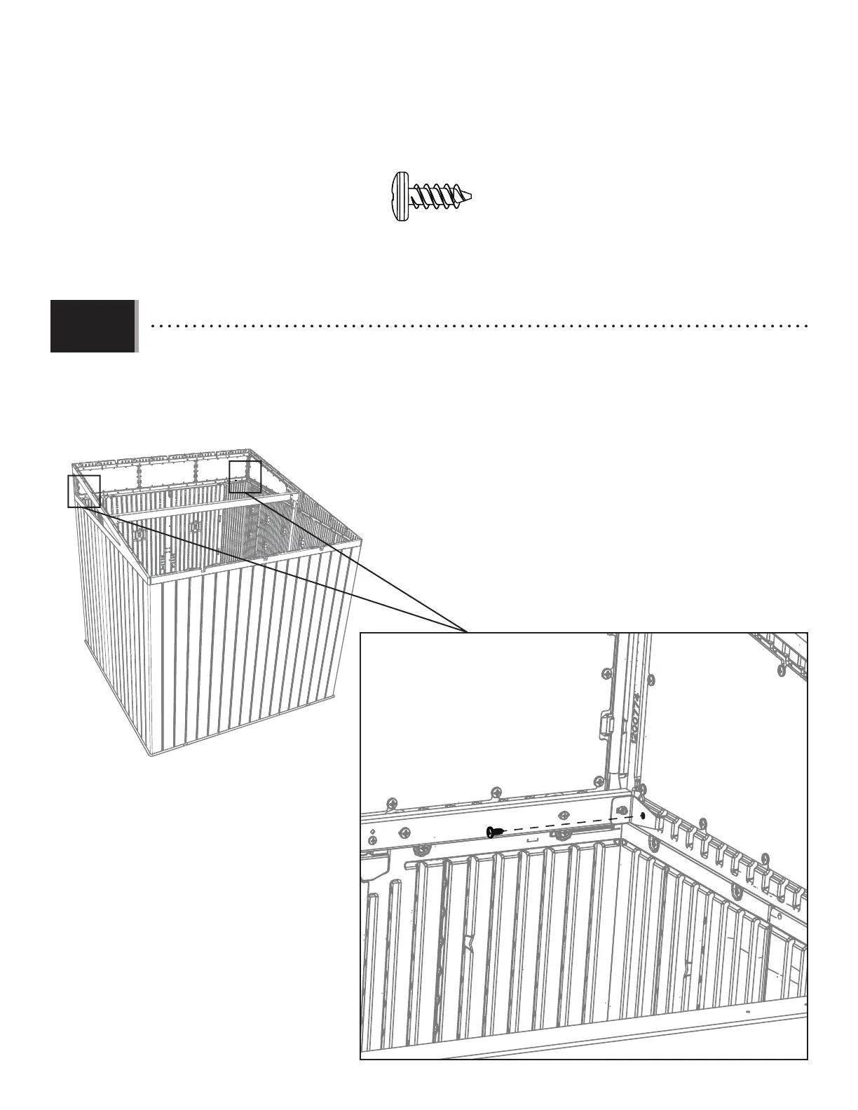 • Secure the transom-to-gable bracket to the left gable using one (1) screw (ADZ). Repeat this step for the right gable.