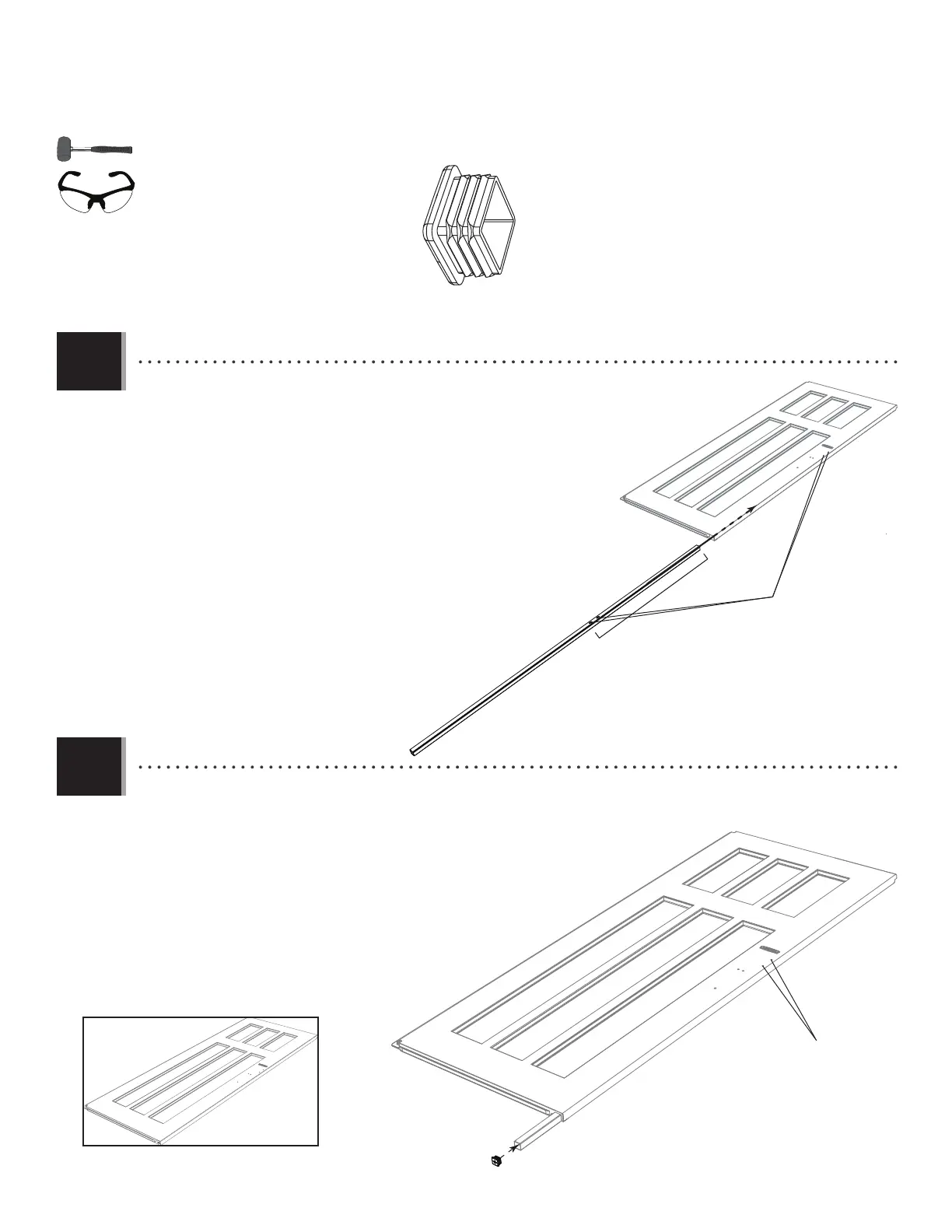 bottom of the door. Align the two holes in the tube with the two holes in the door. If necessary, gently tap with a