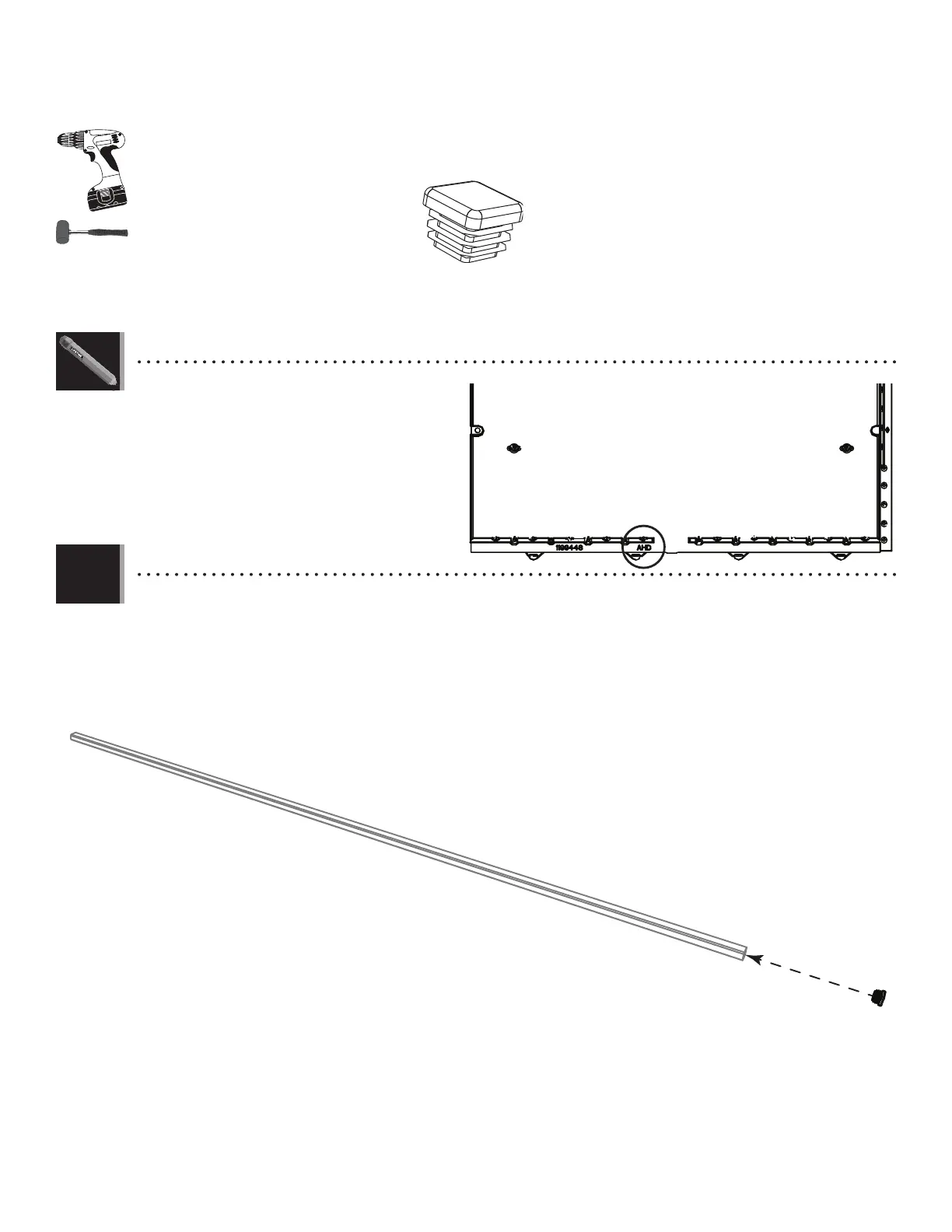 • Insert an end cap (AHS) into an end of each square tube (GAT). If necessary, gently tap with a rubber mallet. Repeat this step for