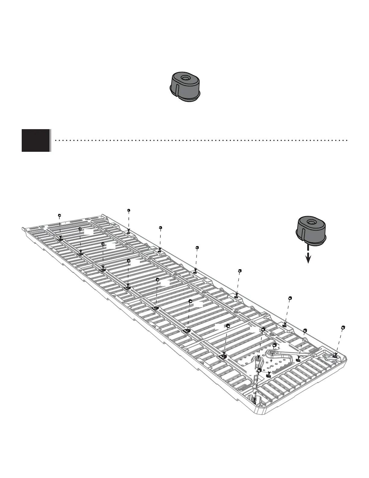 • Encajar diecisiete (17) anclajes (FEX) en la dirección mostrada sólo en las ranuras indicadas en la parte trasera de