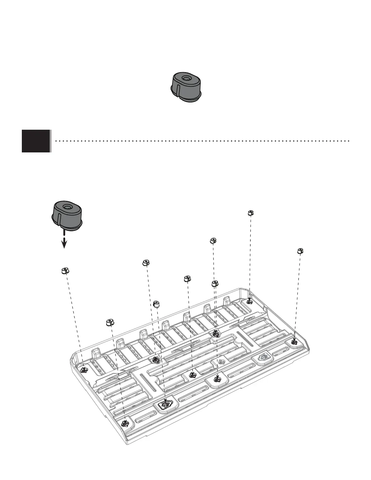 • Encajar nueve (9) anclajes (FEX) en la dirección mostrada sólo en las ranuras indicadas en la parte trasera de este