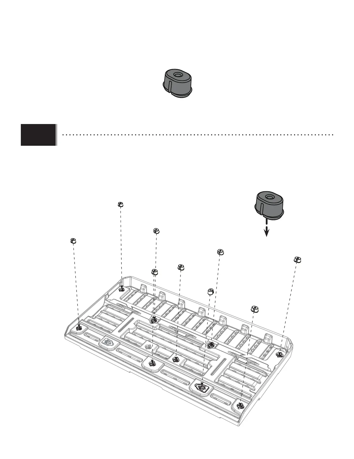 • Encajar nueve (9) anclajes (FEX) en la dirección mostrada sólo en las ranuras indicadas en la parte trasera de