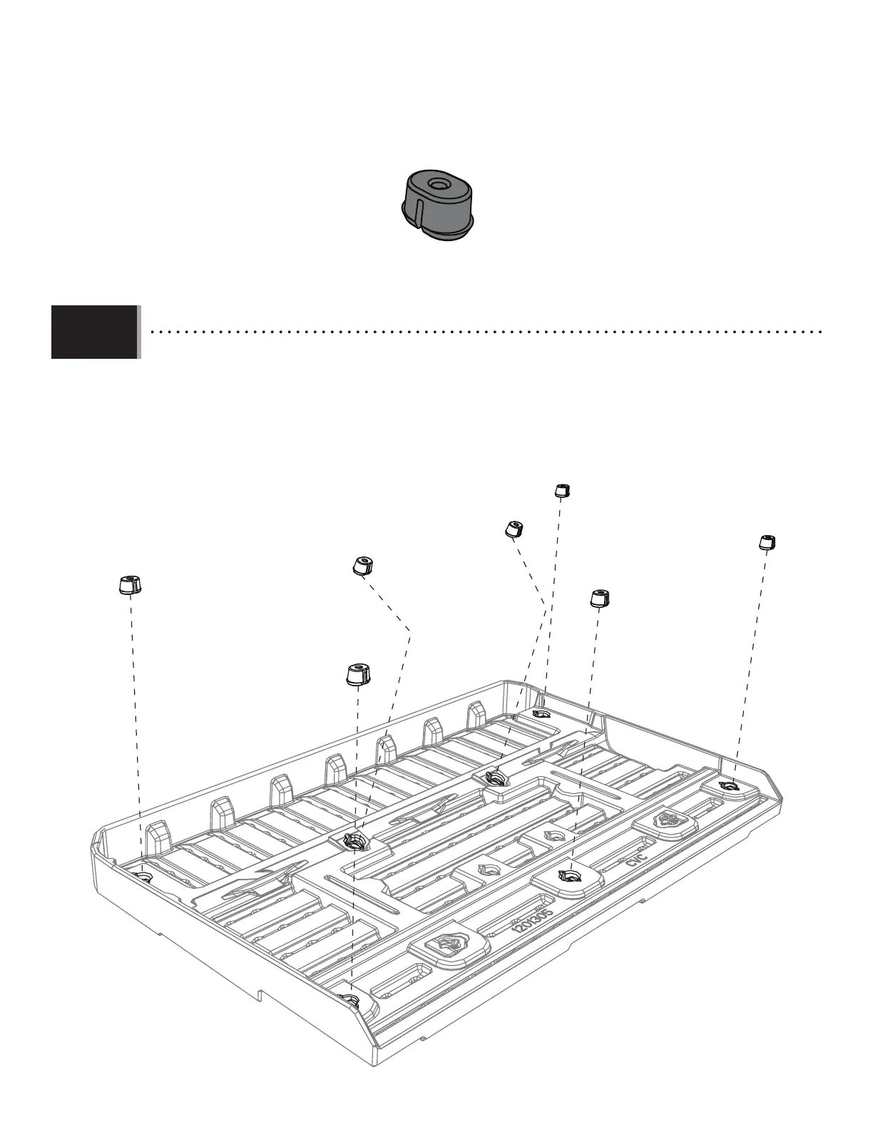 • Snap seven (7) anchors (FEX) in the direction shown into only the slots indicated in this upper roof panel. Repeat