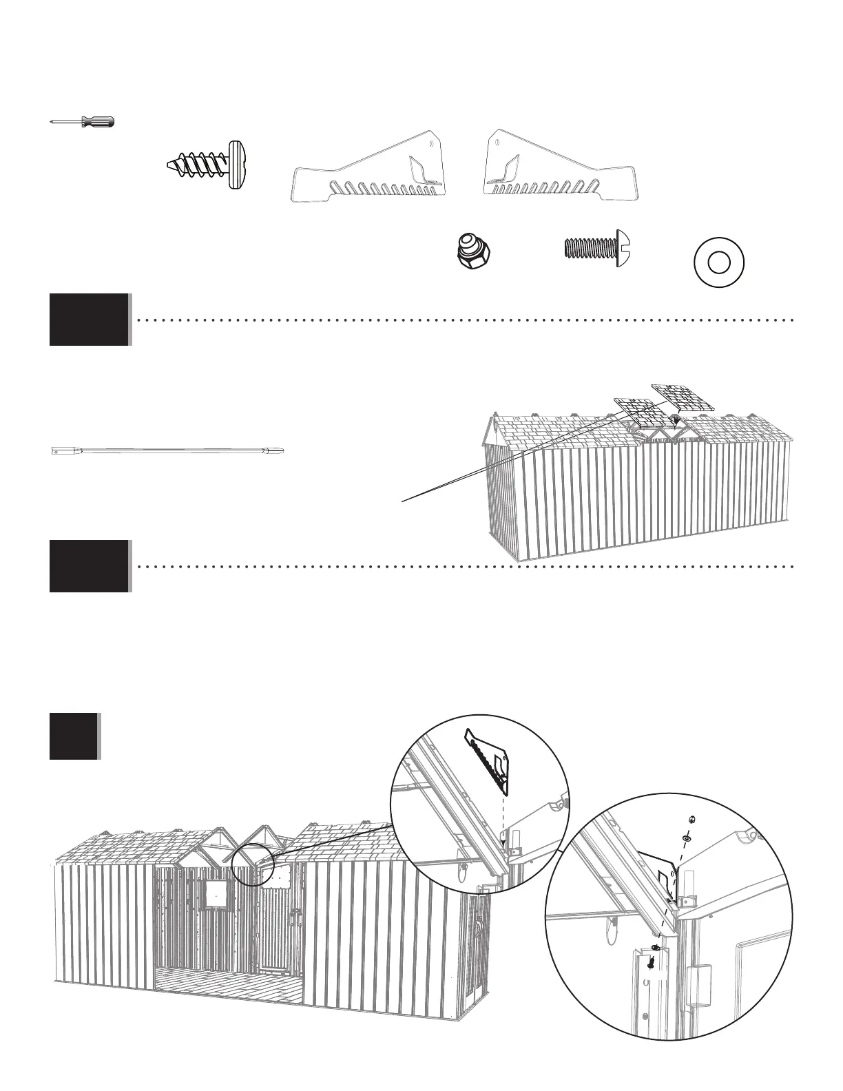 the truss as shown. Secure with the hardware included. Only tighten by hand for now.