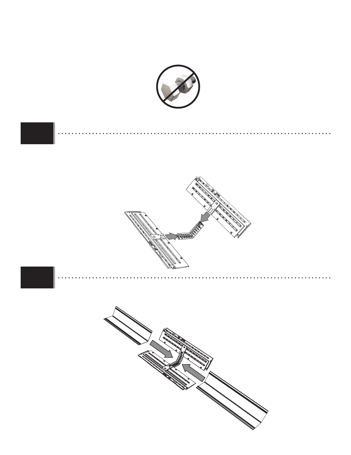 • Insertar los extremos de los dos tragaluces cortos (DQB) en un conector de tragaluces como se muestra.
