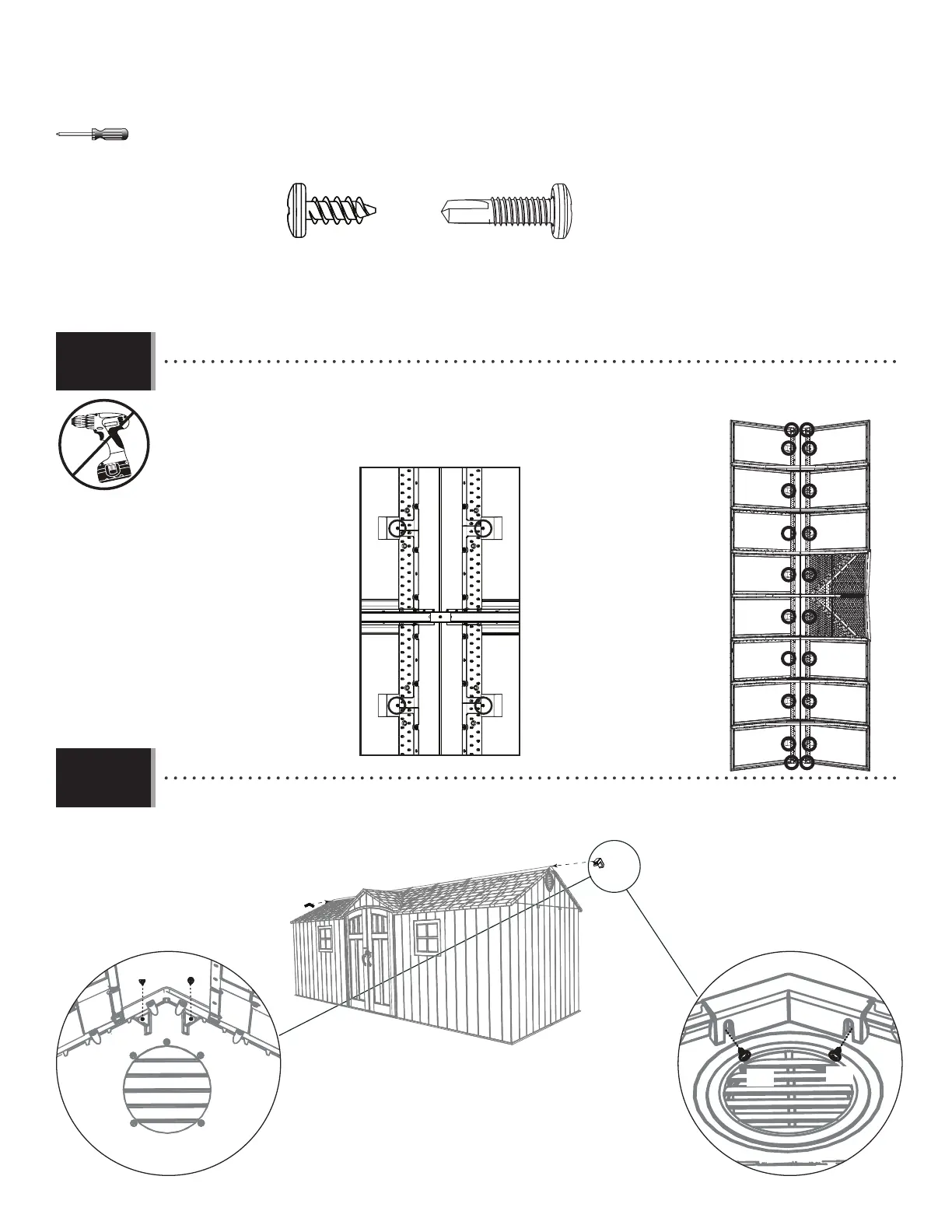 • Connect the roof panel extensions to the roof panels and gables at the locations shown.
