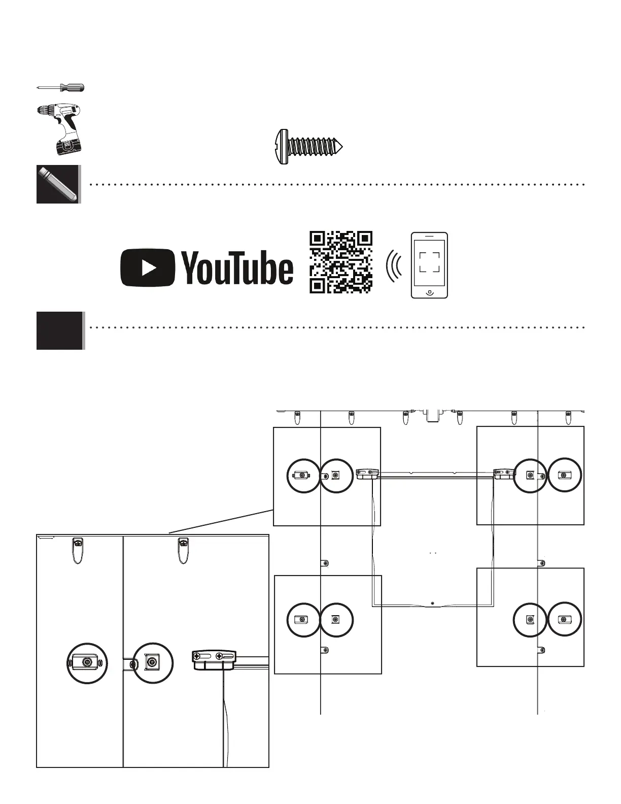 • Il y a quatre groupes de deux indicateurs pour l’emplacement des vis. Une par une, insérer les vis (ARV) à travers les