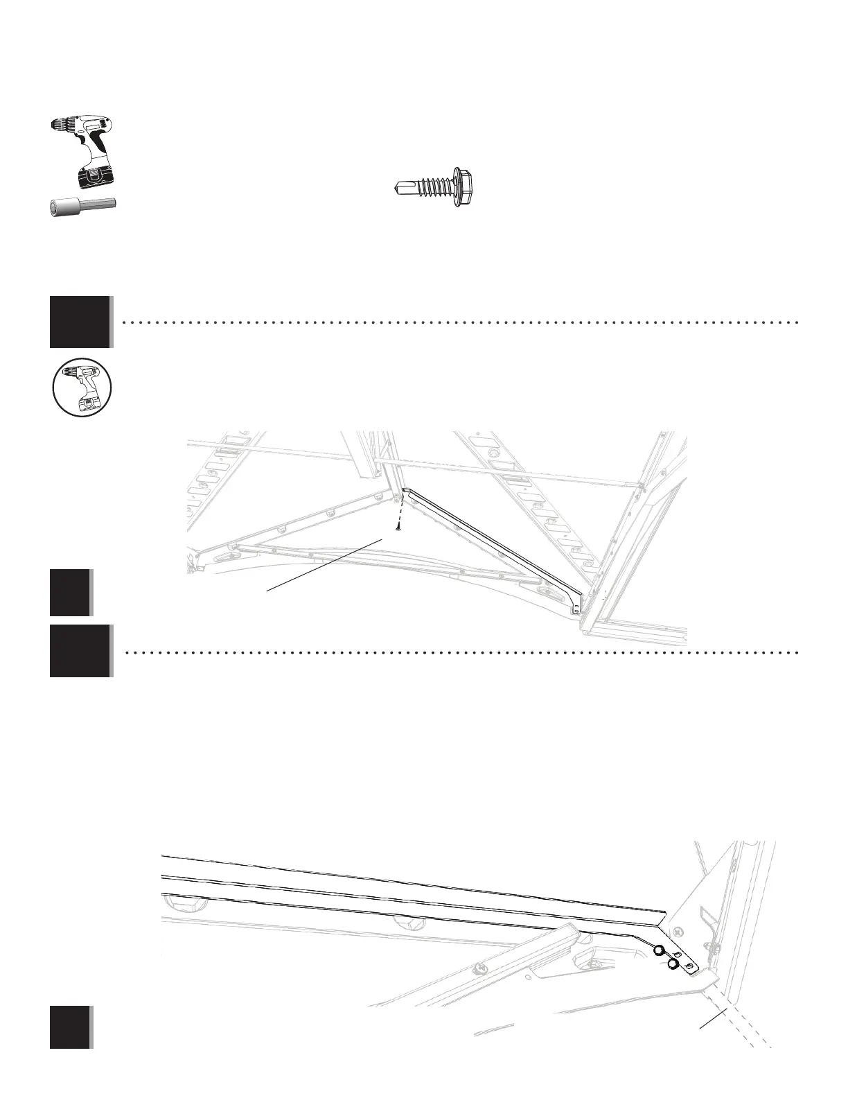• Place the Left Gable Support (EGR) up fl ush against the Gable and Roof as shown. Secure with two (2) Self-Tapping