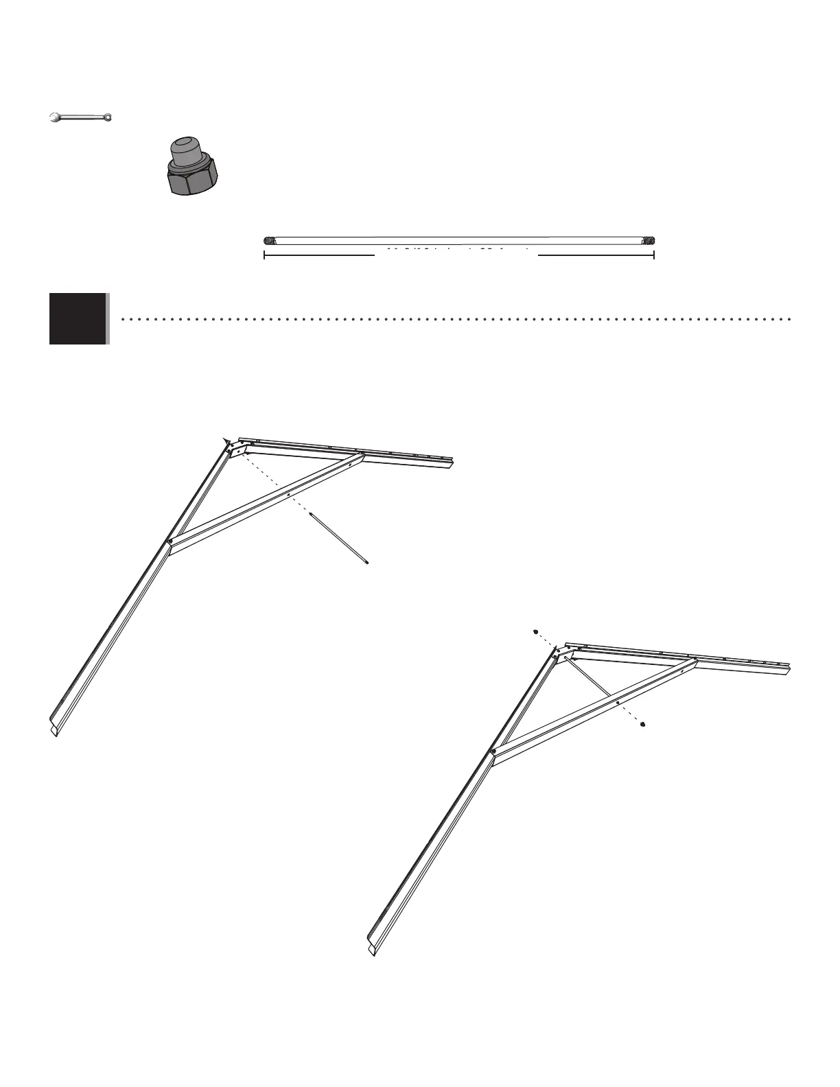 • Slide a truss rod (ADH) through the holes in the large truss brace and connector. Secure with two cap nuts (ADJ). Do not