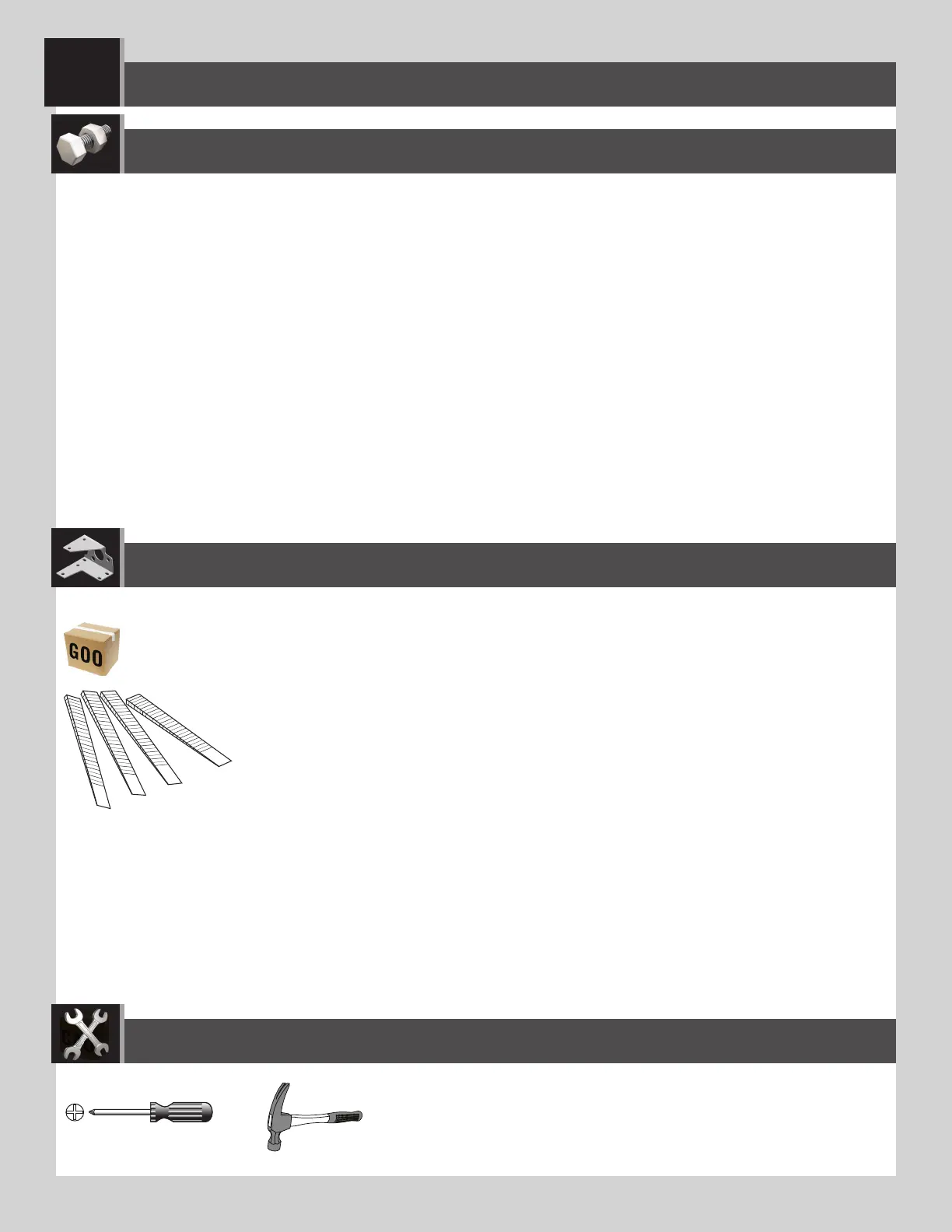 HARDWARE REQUIRED / QUINCAILLERIE REQUISE / HERRAJE REQUERIDO