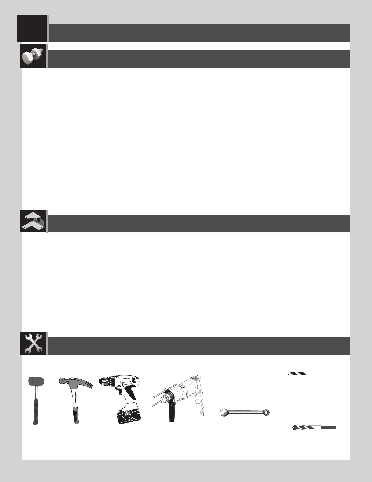 HARDWARE REQUIRED / QUINCAILLERIE REQUISE / HERRAJE REQUERIDO