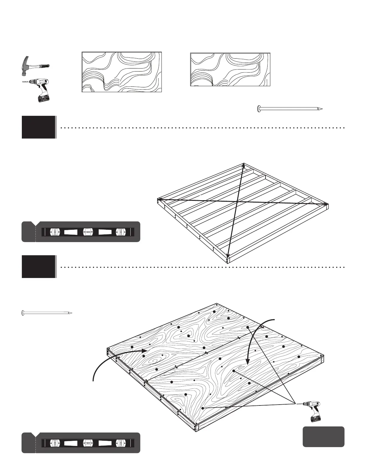 • Using nails, fasten the plywood to the frame. Then, drill 5/16" (8 mm) holes for drainage.