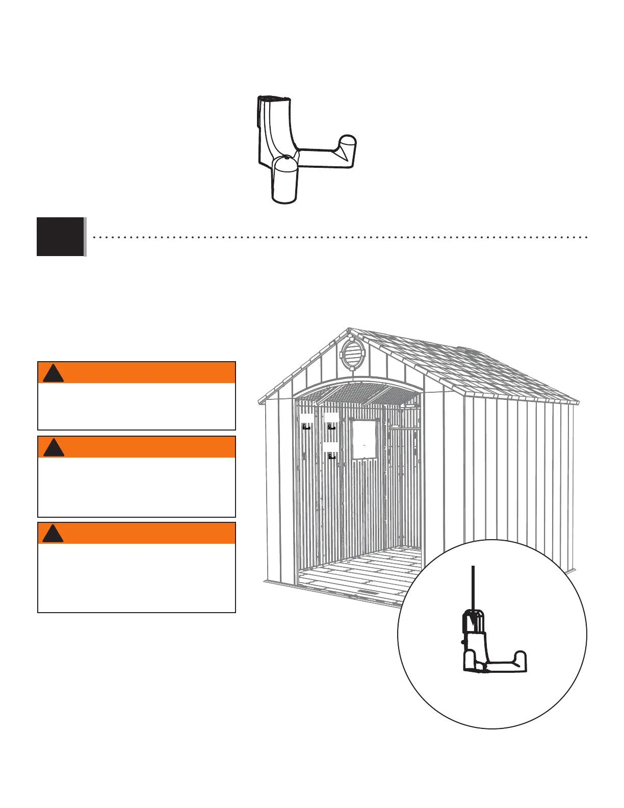 • Insert the six (6) Wall Hooks (EDL) into any of the notches in the Wall Panels (either side of the shed). Then push