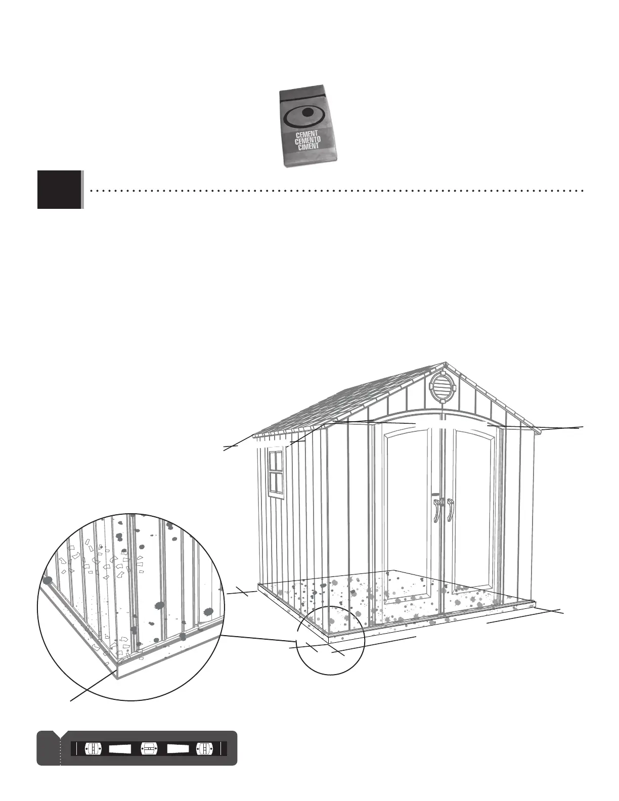 • Le béton doit être d’environ 4 po (10,2 cm) d’épaisseur. Les dimensions réelles de la remise, à sa plus grande dimension