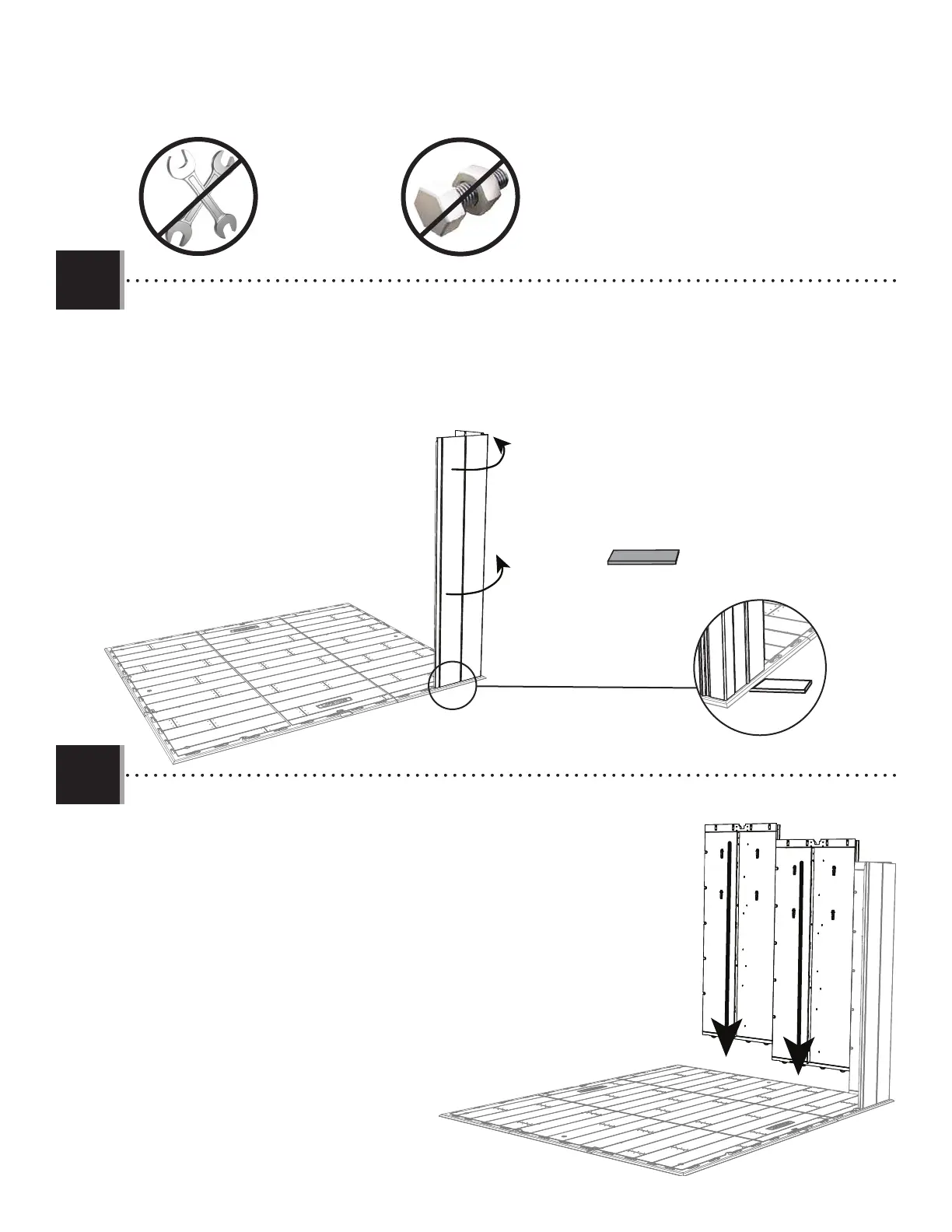 • Bend the corner panel and snap the tabs in place. To help with insertion, place the block (AIW) under the fl oor panel directly