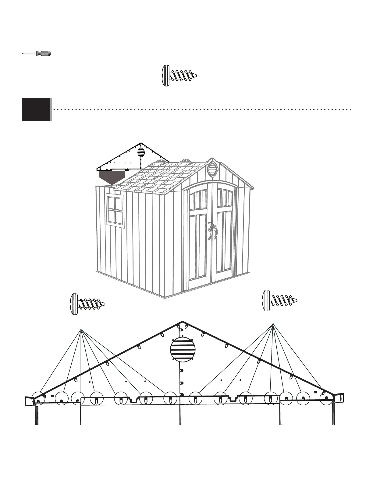 Attach the rear gable to the shed using fourteen (14) screws (ADZ).