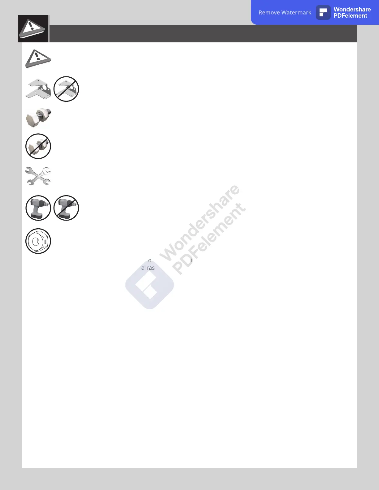 • Indica la utilización de/que no utilizar un taladro eléctrico para un paso específi co.