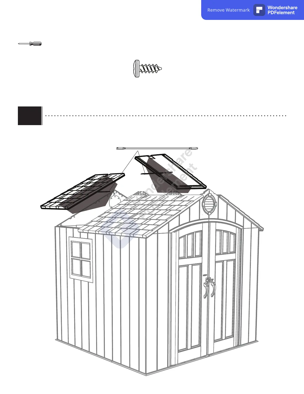 • Sujetar los últimos dos paneles de tejado a la caseta de la misma manera que los primeros dos.