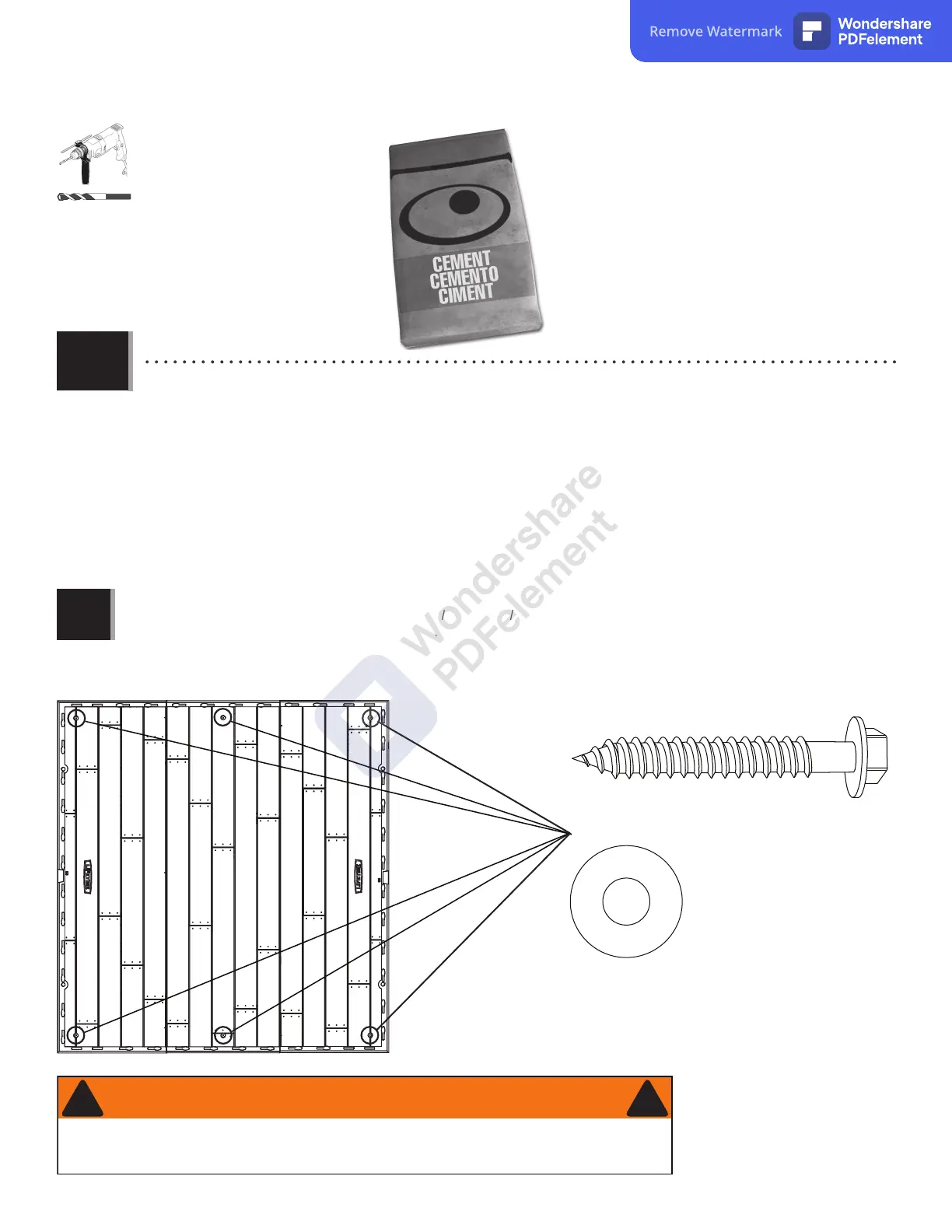 concreto de ≈10 mm x 5 cm (3/8 in x 2 in) y seis (6) rondanas de protección de ≈10 mm x 2,5 cm (3/8 in x 1 in).