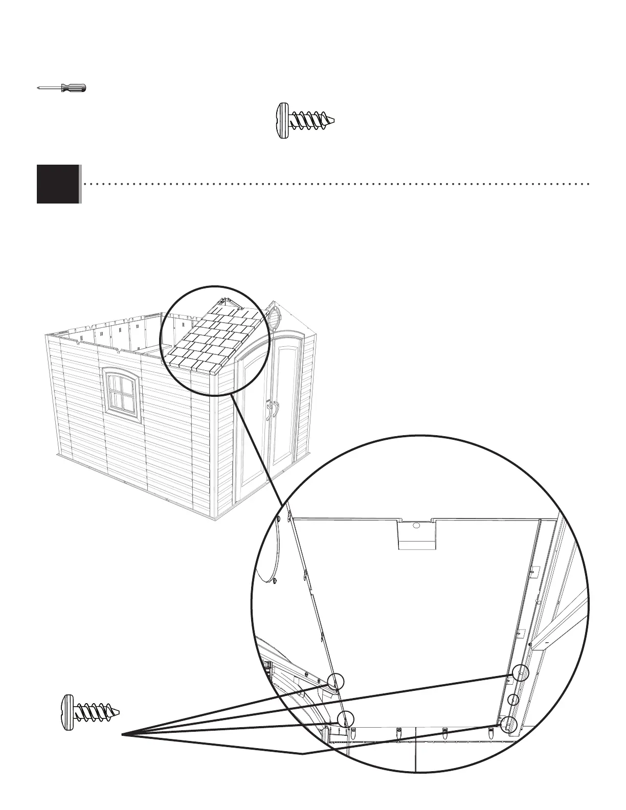 • Insert the fi rst two screws (ADZ) through the gable and into the roof panel and the fi rst two screws (ADZ) through the