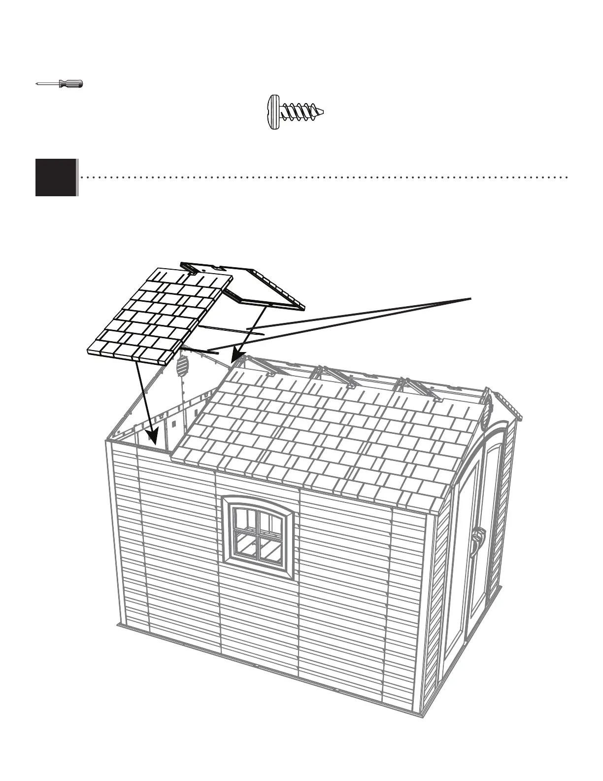 • Attach the last two roof panels to the shed in the same way you did the fi rst two.