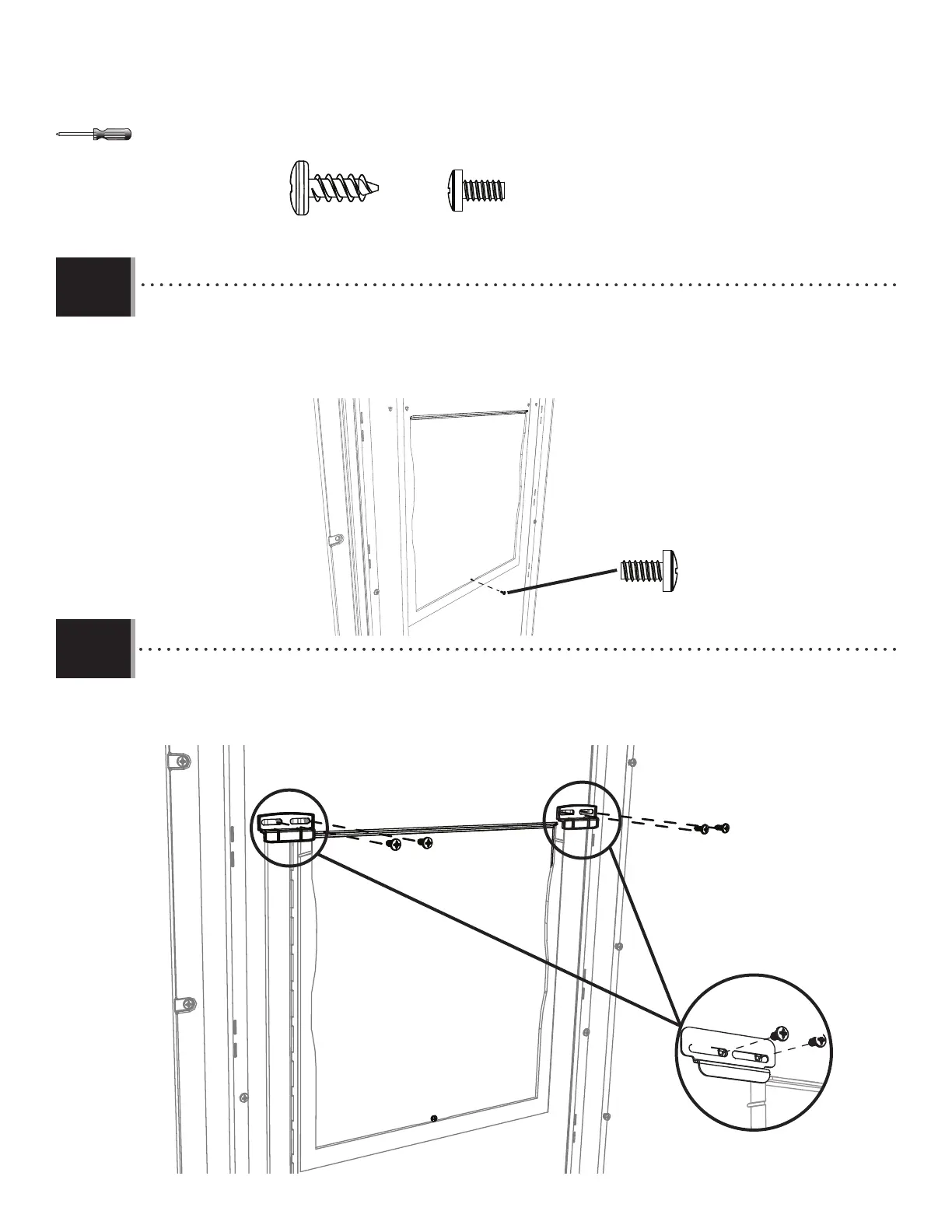 • Attach the two (2) window latches (ADY) at the top corners of the panel opening. The latch should move freely.