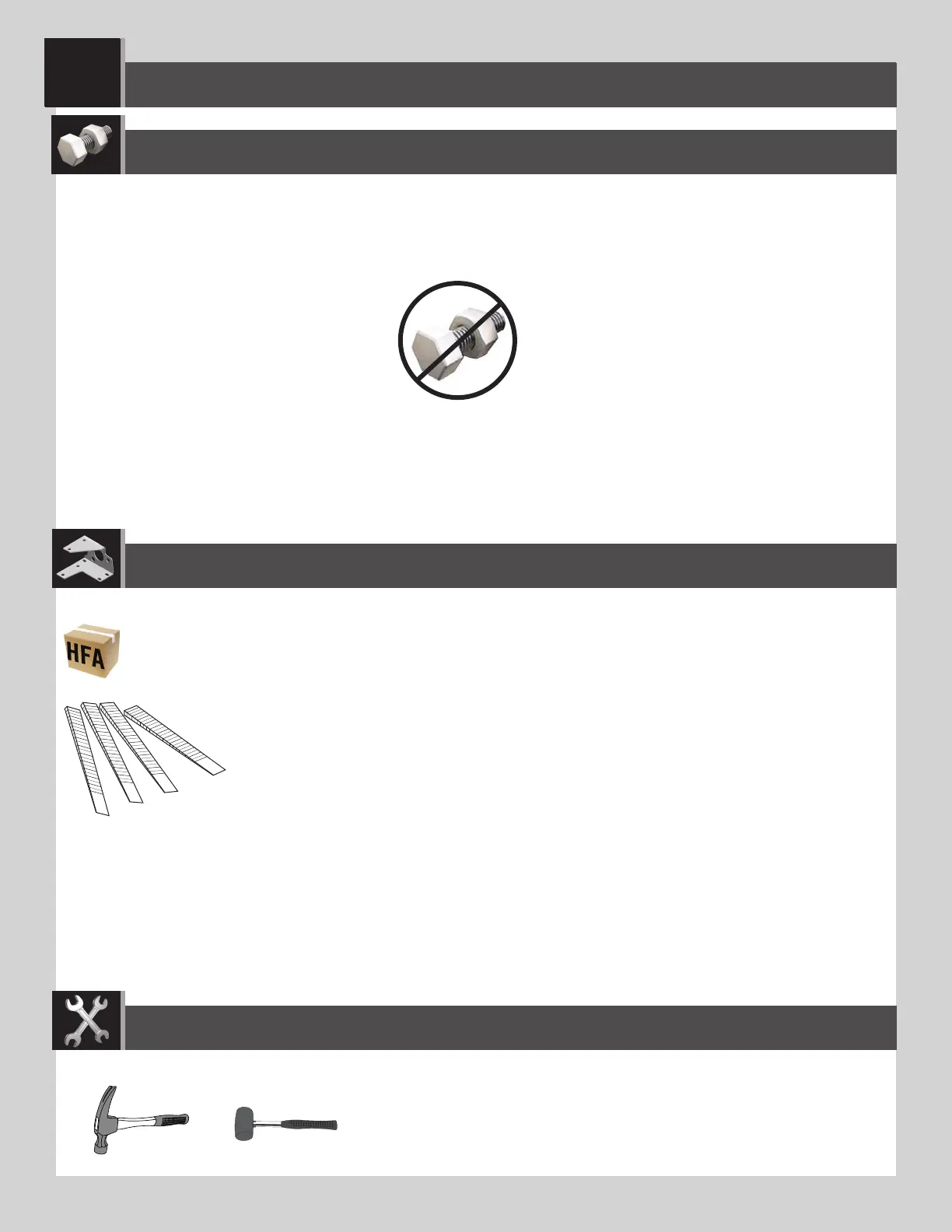 HARDWARE REQUIRED / QUINCAILLERIE REQUISE / HERRAJE REQUERIDO