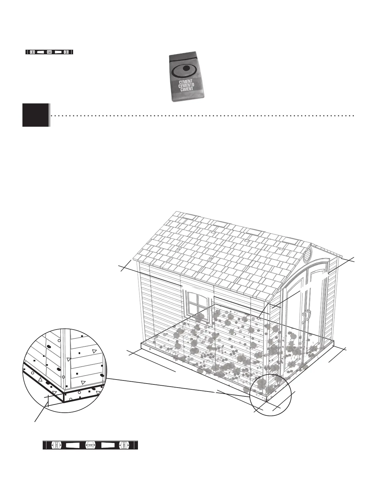 • El concreto debe tener, por lo menos, 4" (≈10,2 cm) de espesor. Las dimensiones reales de la caseta, a