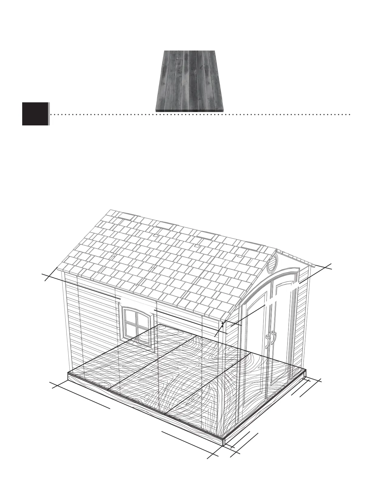 • ¡Toda la madera debe estar clasifi cada para el uso externo! Las dimensiones reales de la caseta, a sus puntos más ancho y largo,