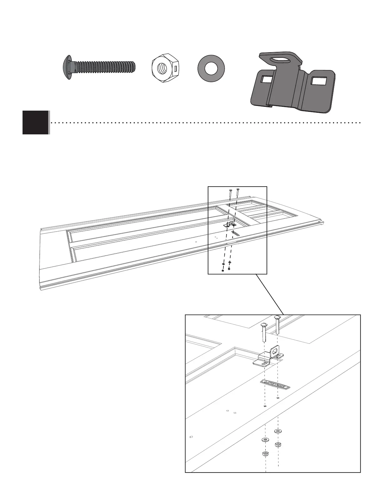 • Attach the door latch bracket (EOY) to the door using the hardware indicated. Only hand-tighten for now.