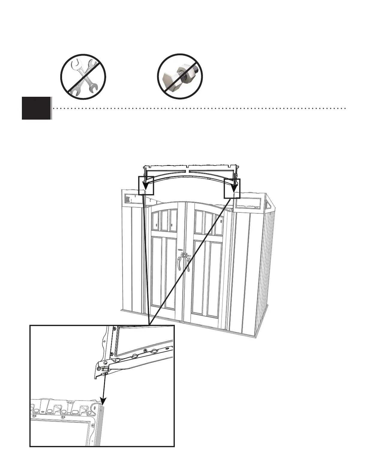 • Slide the holes in the front transom down over the two hinge tubes in the doors. There are holes on the