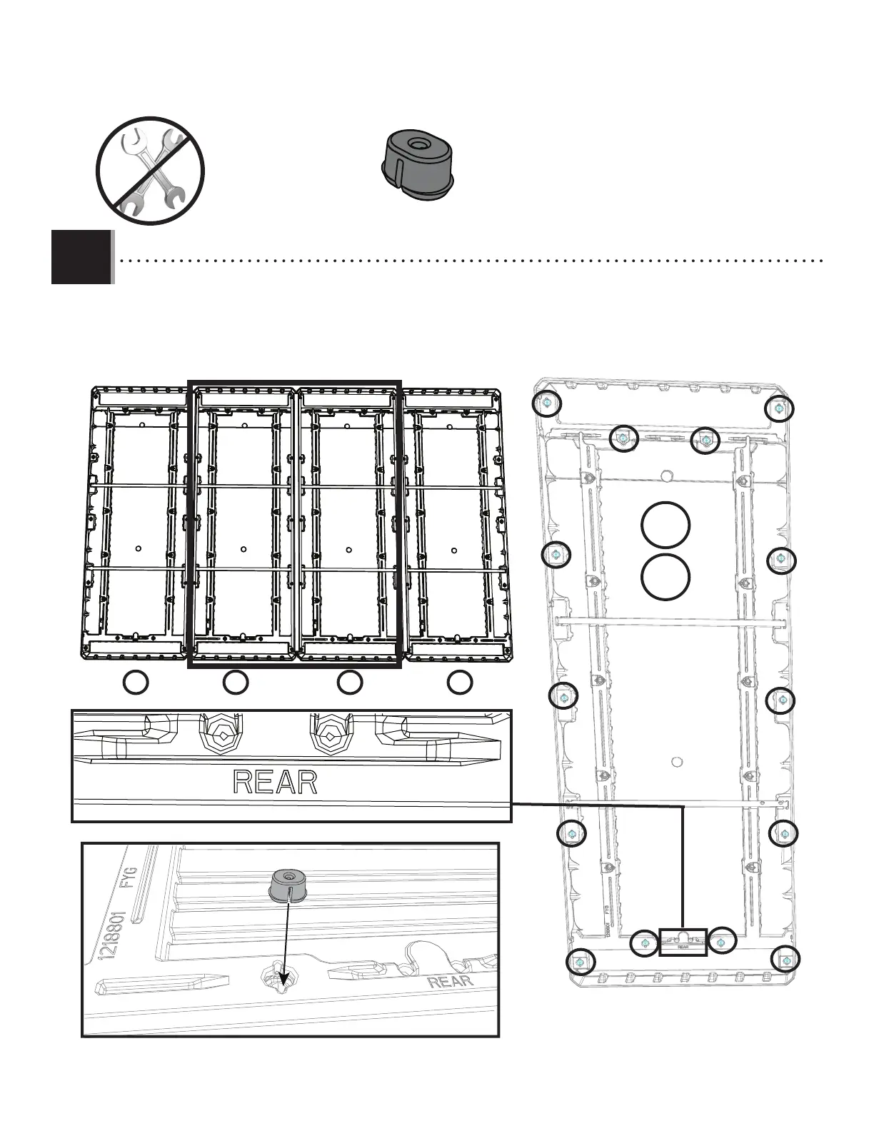 • Encajar catorce (14) anclajes (FEX) en la dirección que se muestra solo en las ranuras indicadas en este panel de