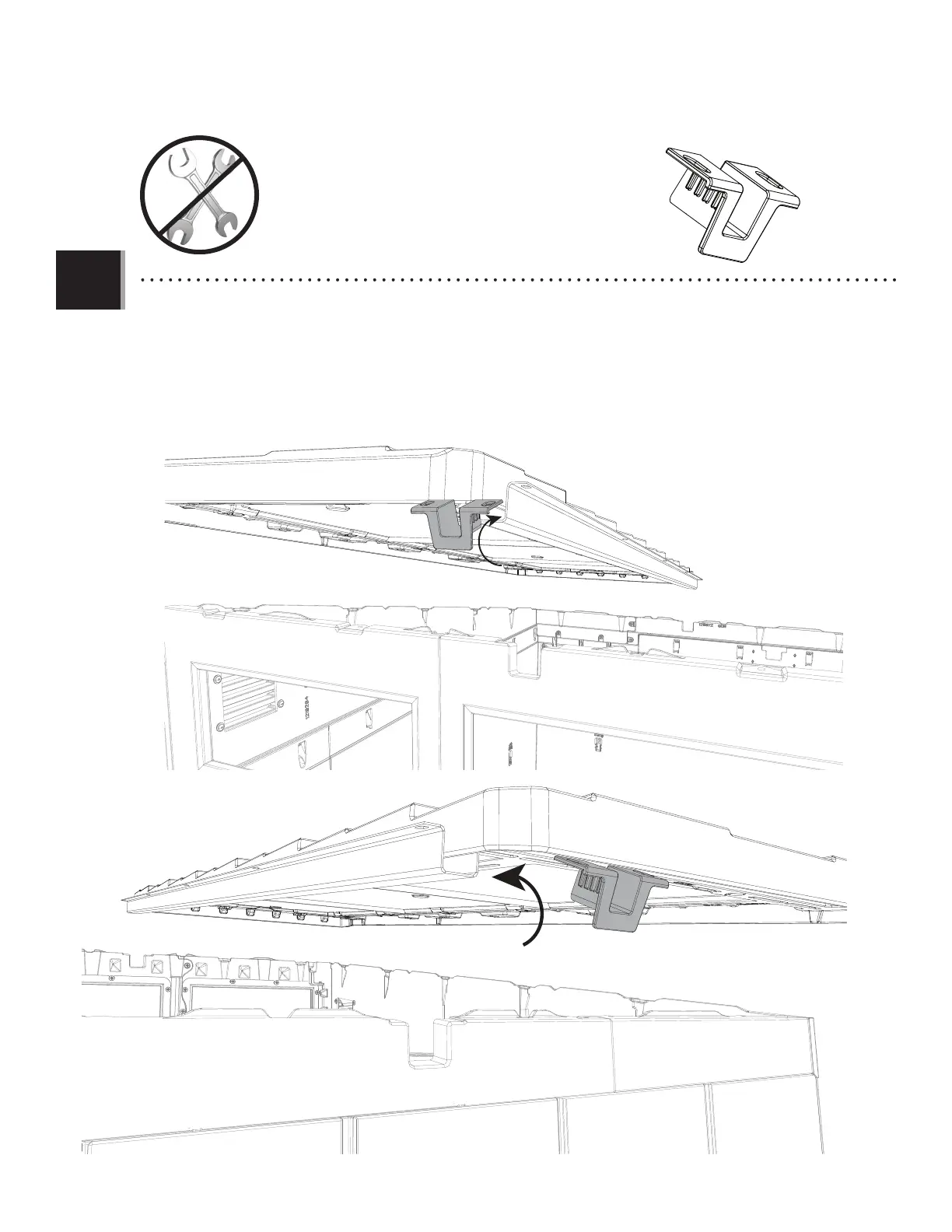 • To insert one (1) gutter channel cover (GLB) into each end of a gutter channel, slightly tilt the cover upon insertion. Press it