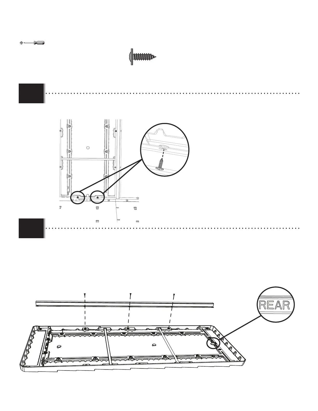 • Attach the back of the second roof panel with the hardware indicated.