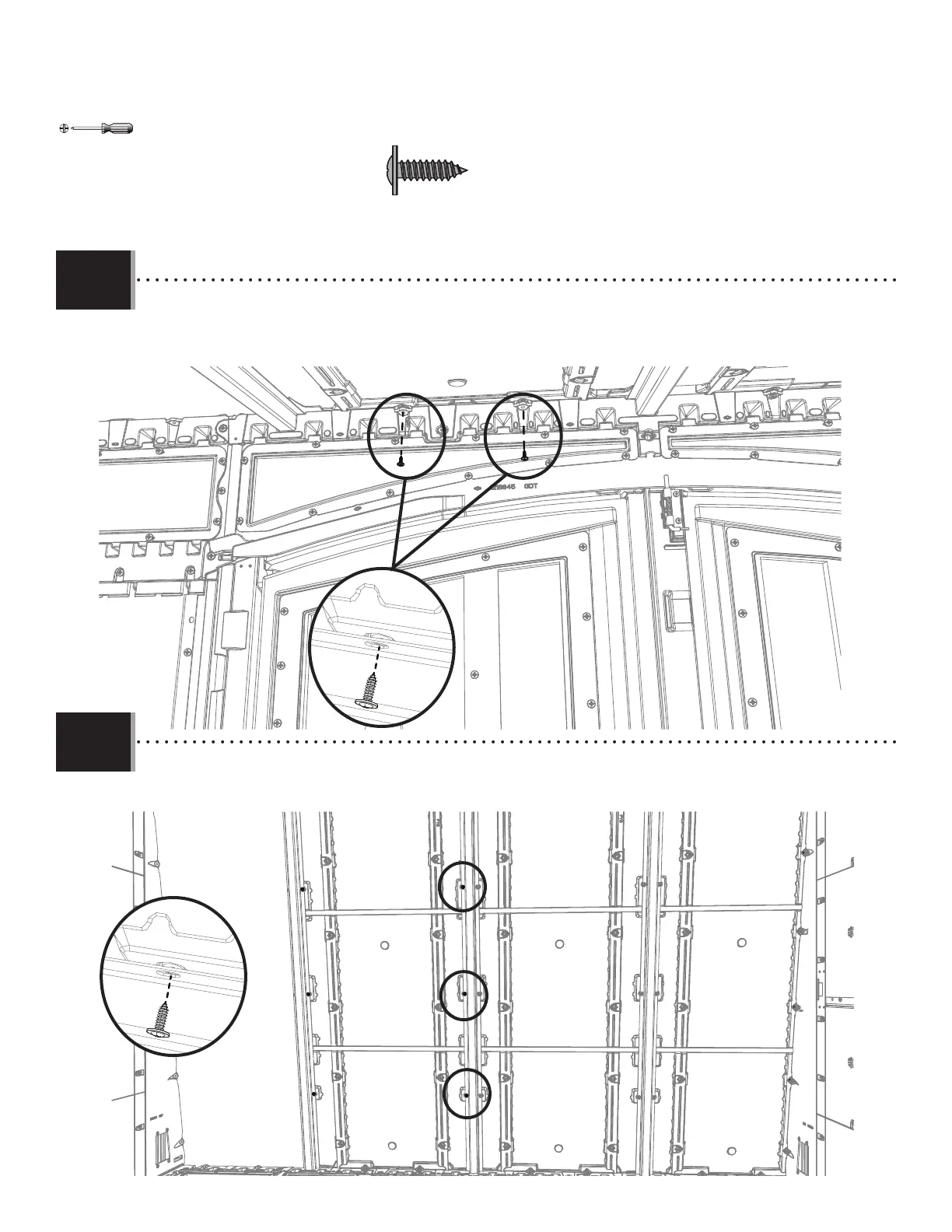 • Fixer le milieu du troisième panneau de toit avec la quincaillerie indiquée.