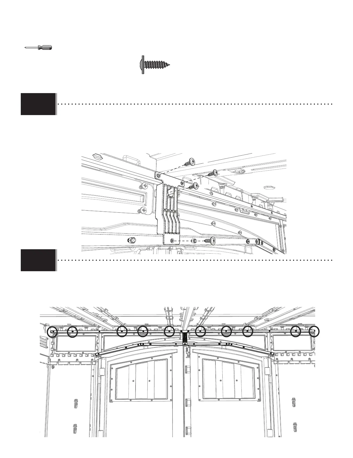• Ceci est le placement de la quincaillerie pour le tube collecteur supérieur (FVT). Les deux (2) prochaines étapes vous