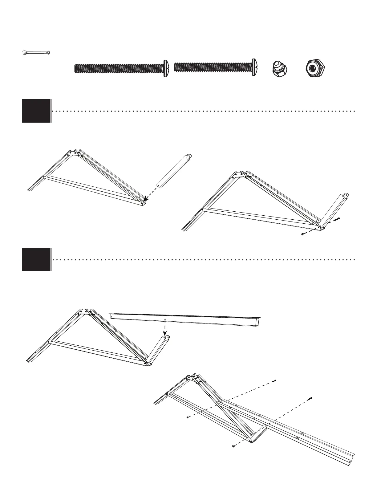• Secure the horizontal truss brace (DSO) to the truss with the hardware shown. Now, tighten the nut from Step 2.11.