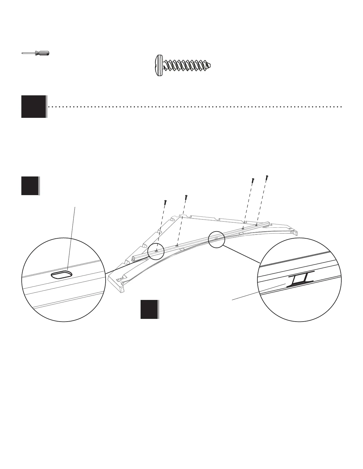 • Align the holes in the header with those in the gable. Secure with the hardware provided.