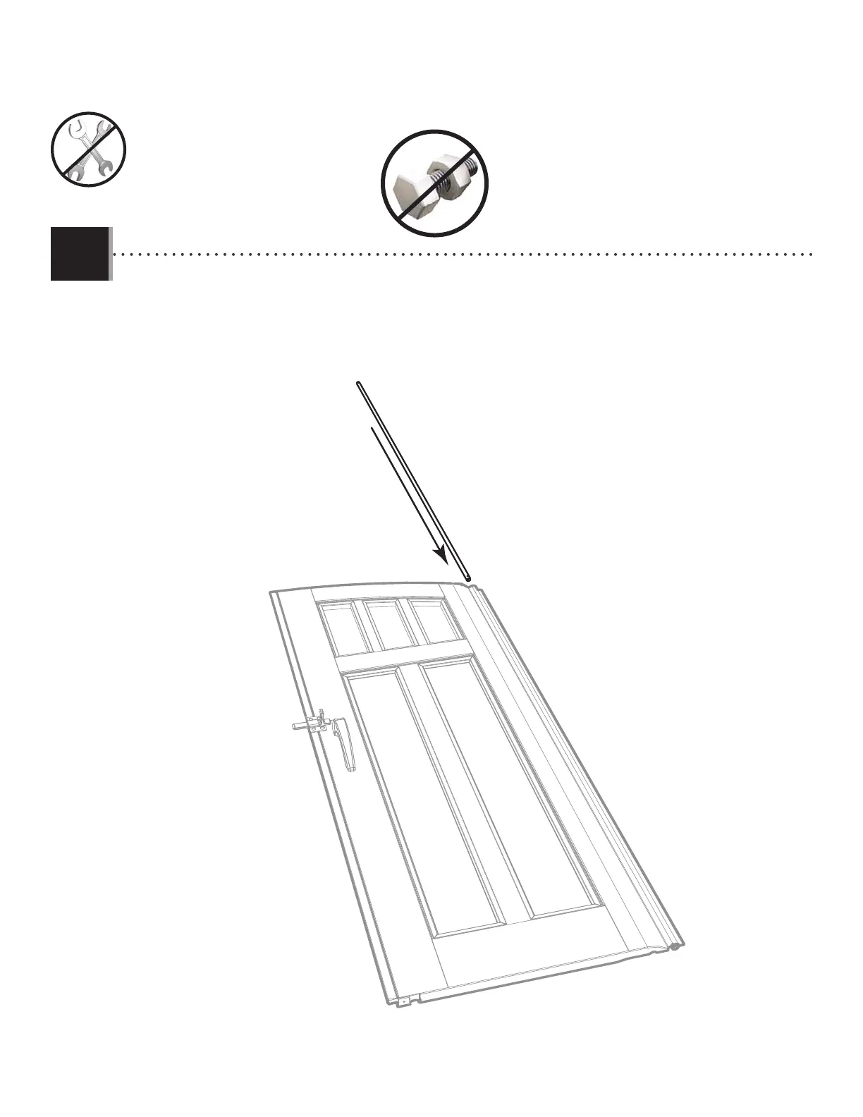 • Slide a hinge tube (CRE) into the hole in the door until a few inches remain out of the bottom.
