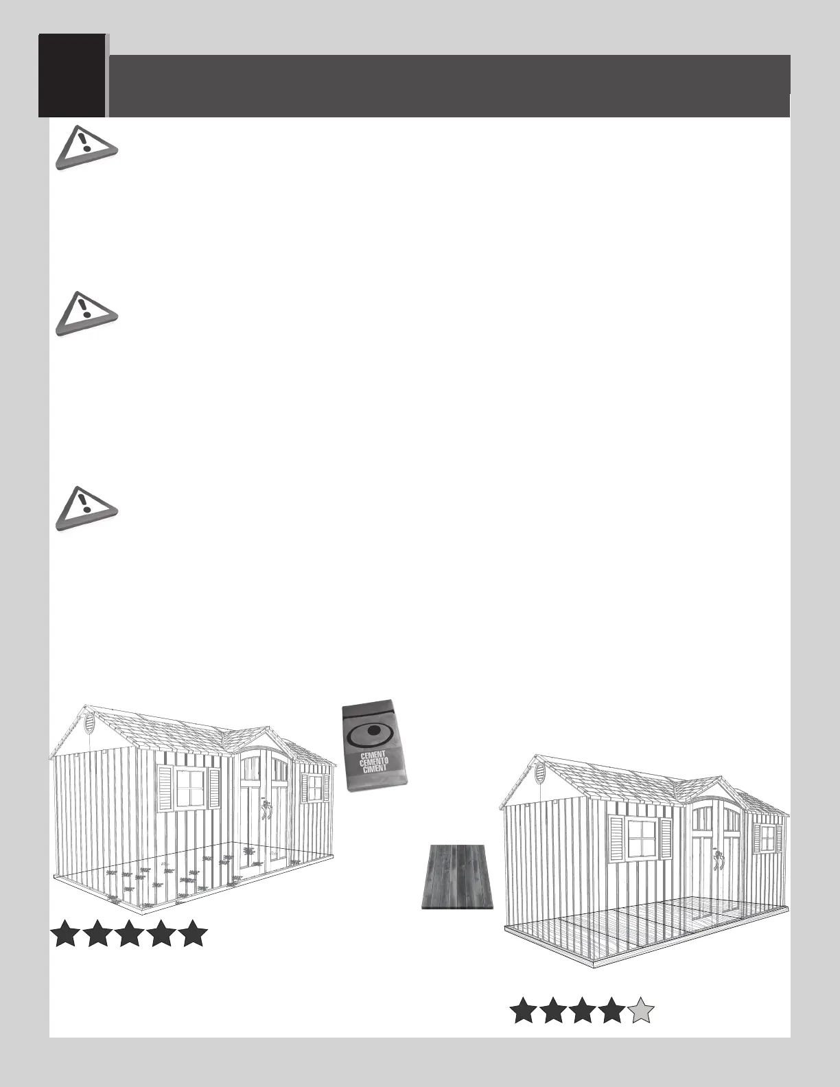 • Es preciso construir una plataforma sobre la cual usted debe ensamblar su caseta. Puede suceder que en su