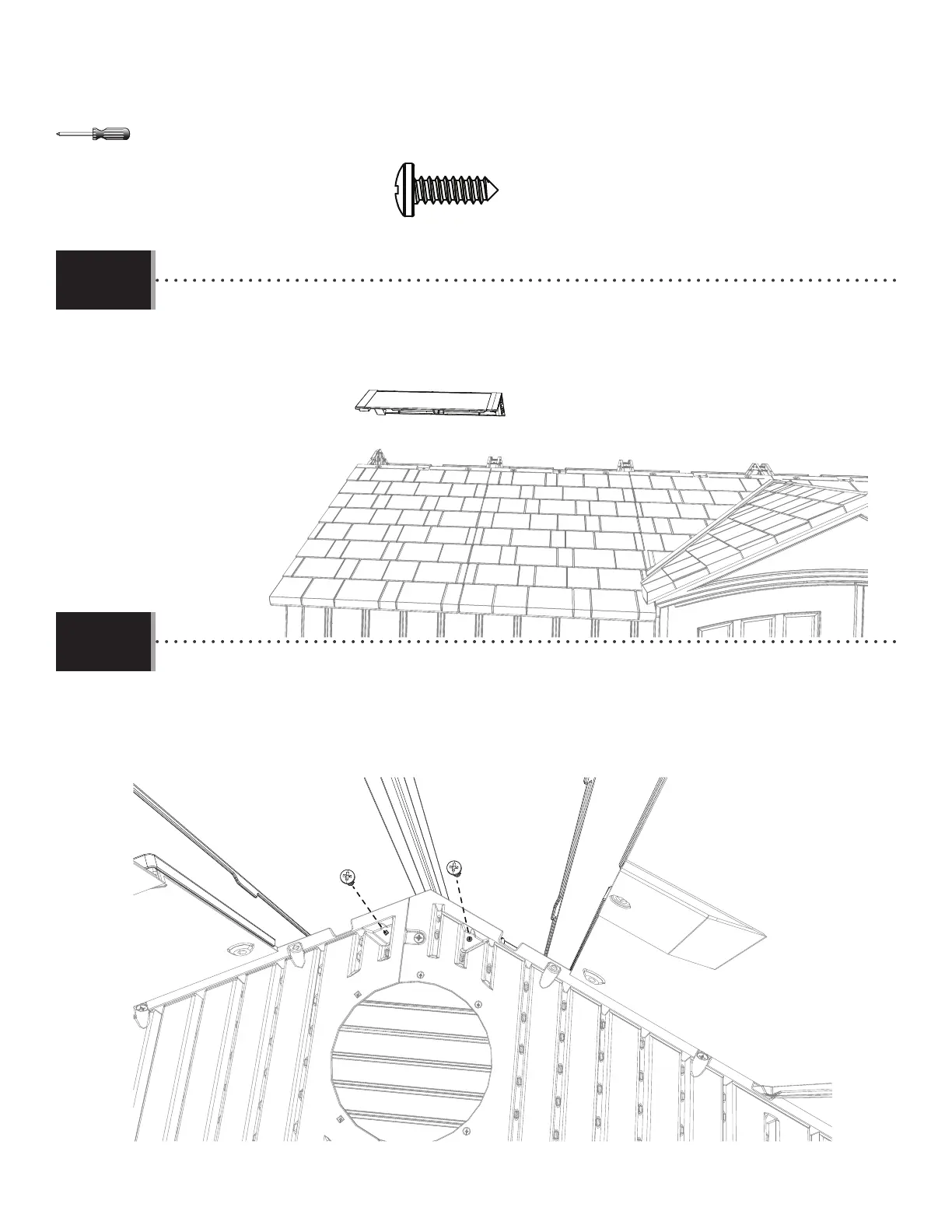 • Mettre le puits de lumière sur l’extrémité du toit. Fixer le capuchon sur le toit à pignon. L’extrémité du