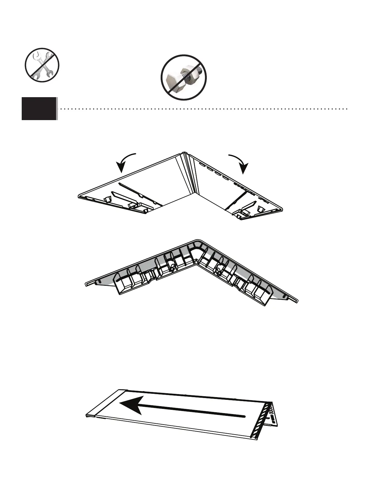 • Connect the last skylight to the remaining end cap. Fold the skylight before inserting into the cap.