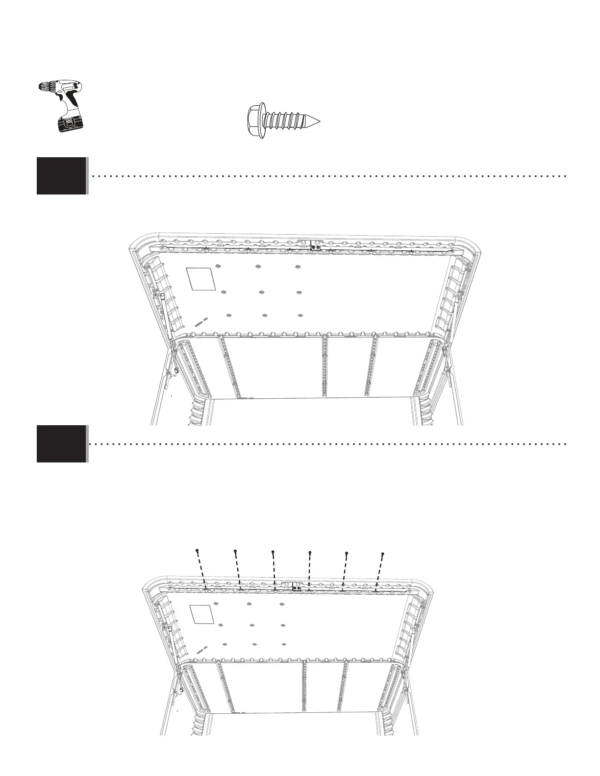 • Secure the brace to the lid with six (6) screws (BCK) at the locations indicated. The diameter of the screw is meant to be a little bit