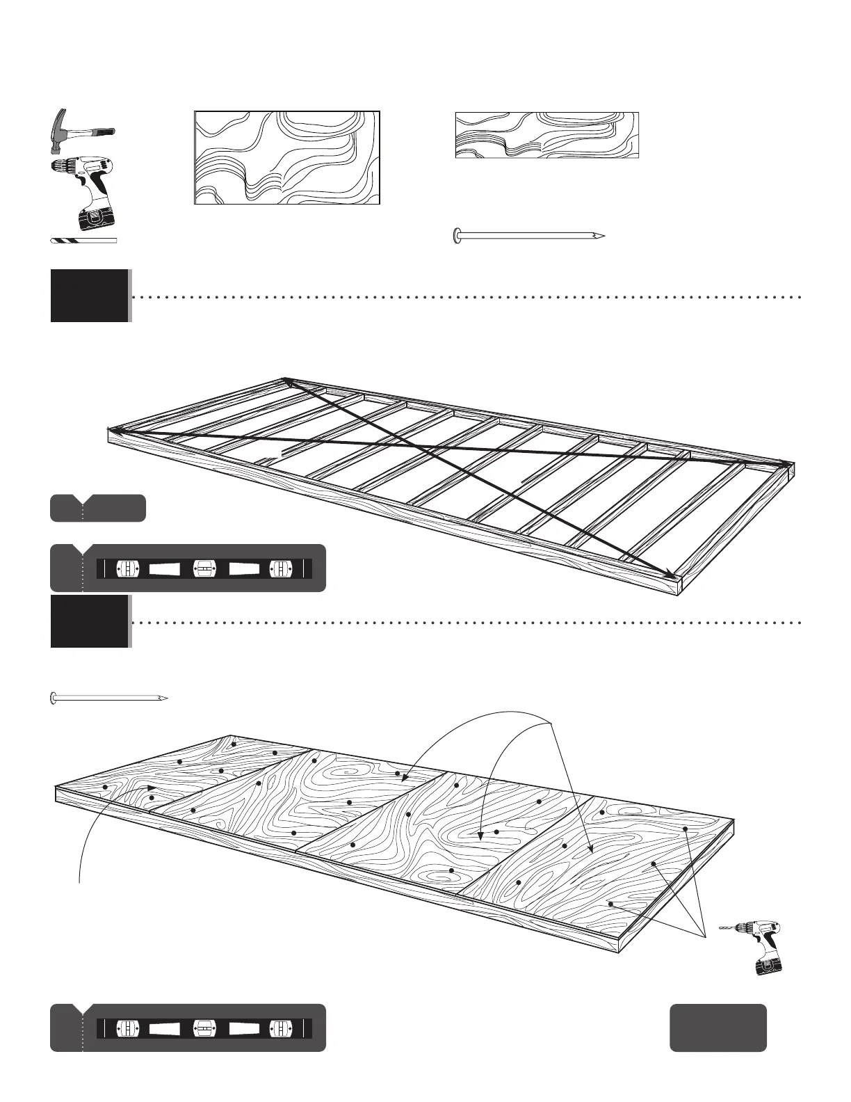 • Using nails, fasten the plywood to the frame. Then, drill 3/8" (≈4 mm) holes for drainage.