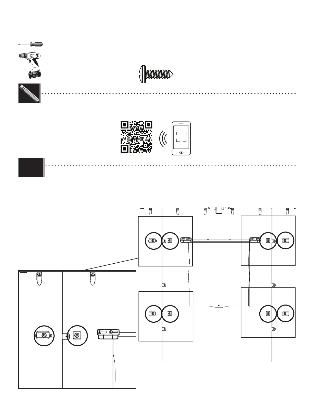 • Il y a quatre groupes de deux indicateurs pour l’emplacement des vis. Une par une, insérer les vis (ARV) à travers les