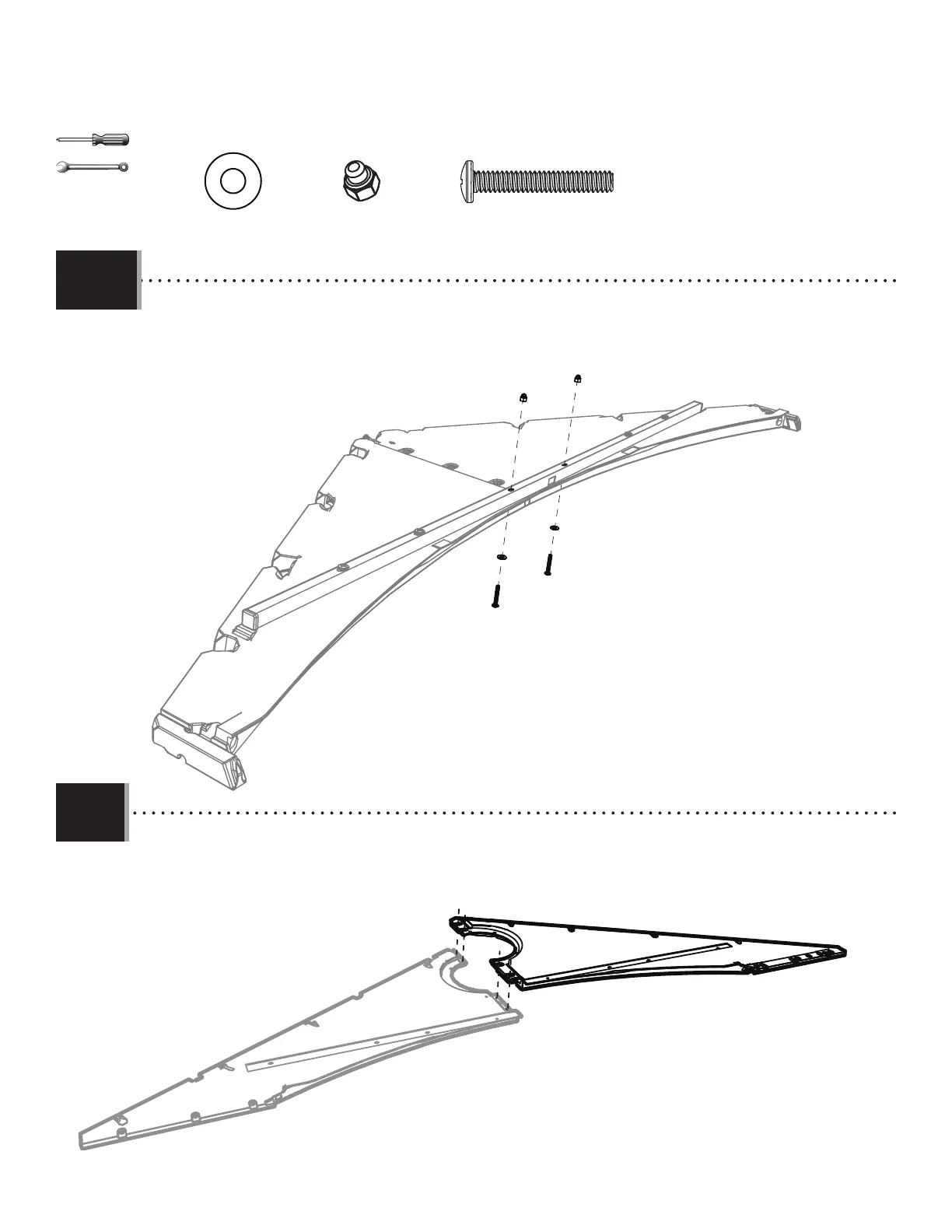 • Secure with two (2) screws (EYR), two (2) washers (AEE), and two (2) nuts (ADK).