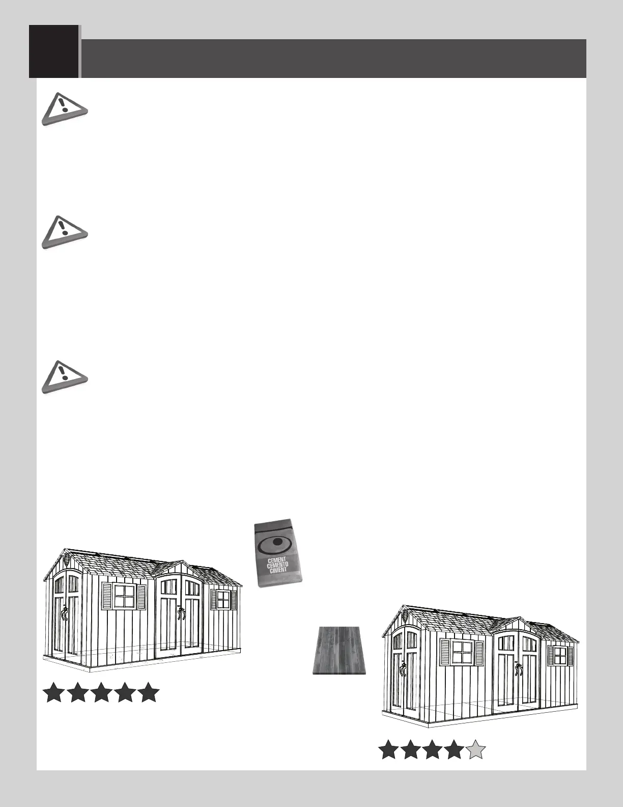 required in your neighborhood. Consult all local building codes prior to assembling the shed. Before beginning