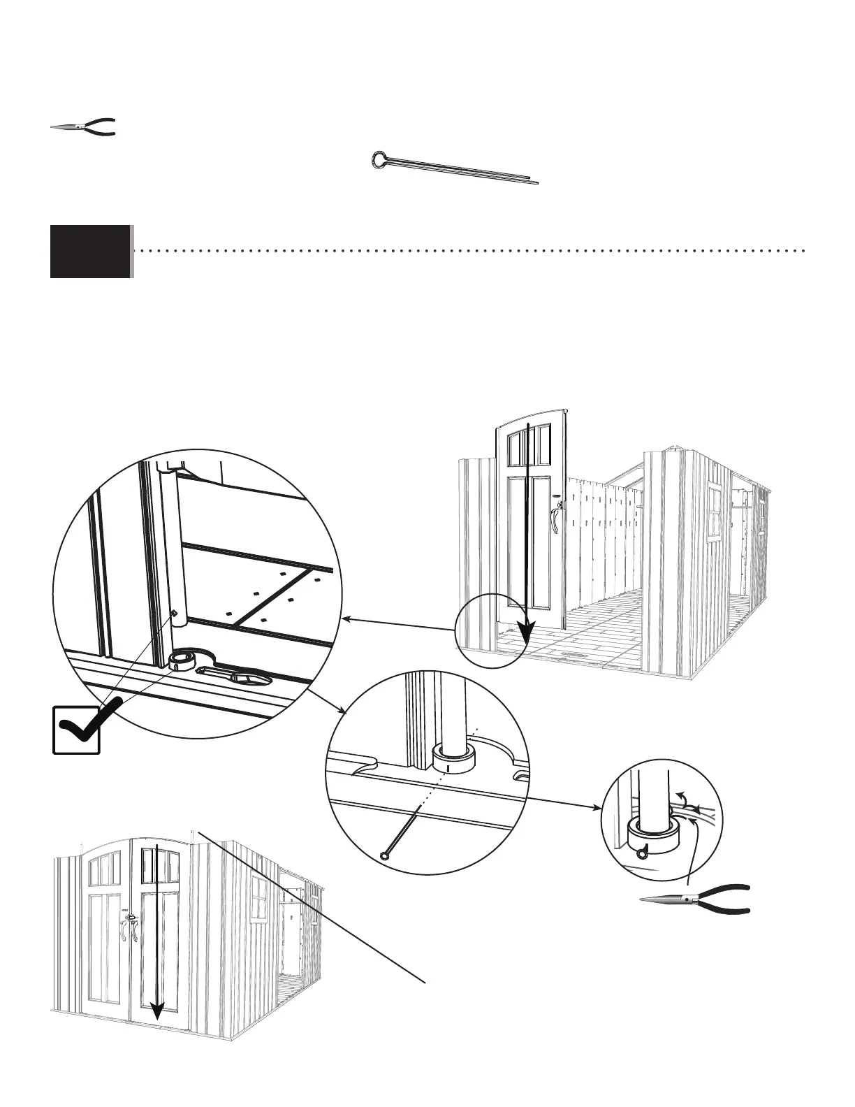 insertar el tubo. Insertar una clavija (AHP) y doblar los extremos. Repetir este paso para la puerta derecha.