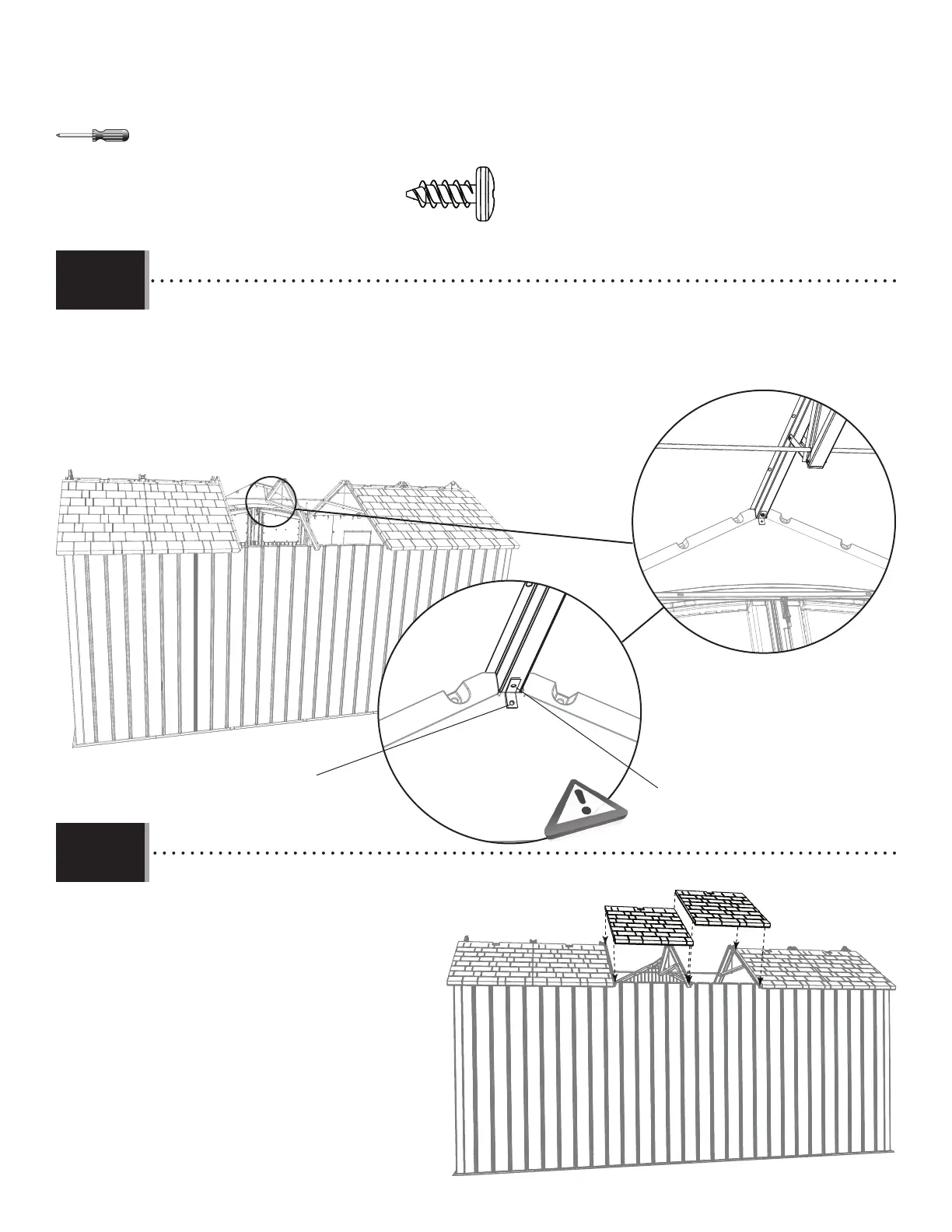 • Colocar el extremo de la cercha central en la muesca en la fachada delantera como se muestra.